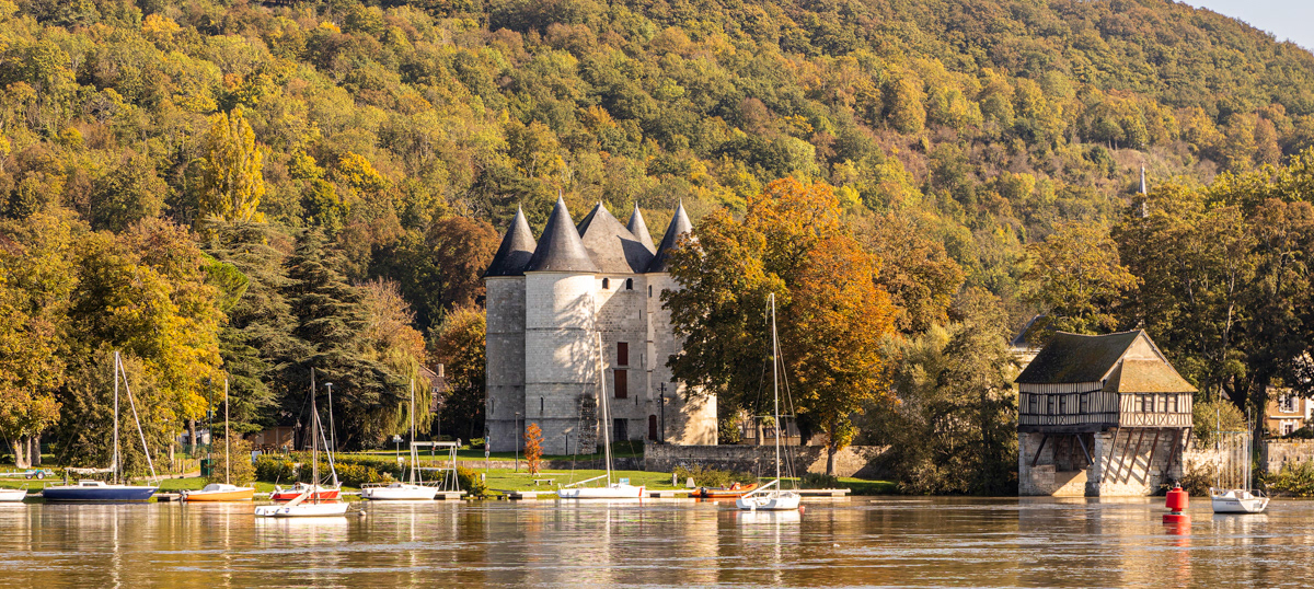 a pretty bourgeois village of cobblestone streets and half-timbered buildings. The "Gateway to Normandy. Collegiale Notre-Dame (11 and 16th century Gothic Style church)